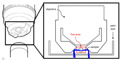 Biologický vzorek je tradičně umístěn do plastové FEP trubičky a manuálně otáčen o 360 stupňů kolem osy. Tím se získá více informací o struktuře a vlastnostech biologického vzorku a také se lépe vizualizují různé části vzorku. Pro tento účel jsme vyvinuli přizpůsobený úchyt vzorku, který umožňuje motorizované, plynulé a pohodlné otáčení o 360 stupňů. V úvahu byly brány požadavky na stabilitu, spolehlivost řešení a snadné otáčení vzorku. Příklad našeho řešení je uveden na následujících obrázcích.