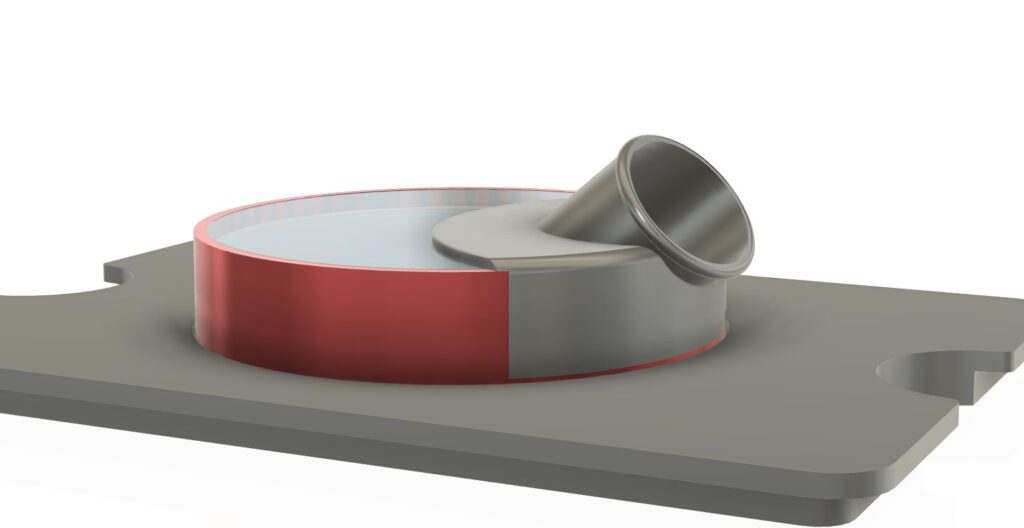 Unfortunately, most microscope chambers placed on the microscope stage are made of unsuitable components (iron, which attracts the magnet applied to the cells) or contain built-in magnets that can affect the entire experiment when a magnetic field is applied to the magnetic particles. Therefore, we have developed a unique non-magnetic holder for these purposes, including a circular dish system. An illustrative model is shown in Figure 2.